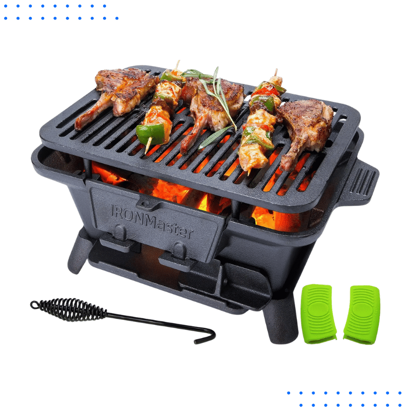 We evaluated this cast iron charcoal grill by testing multiple meal types — including skewers, steak, and grilled veggies. Heat distribution, flame control, fuel efficiency, and portability were our key metrics. The grill performed exceptionally in small outdoor setups.